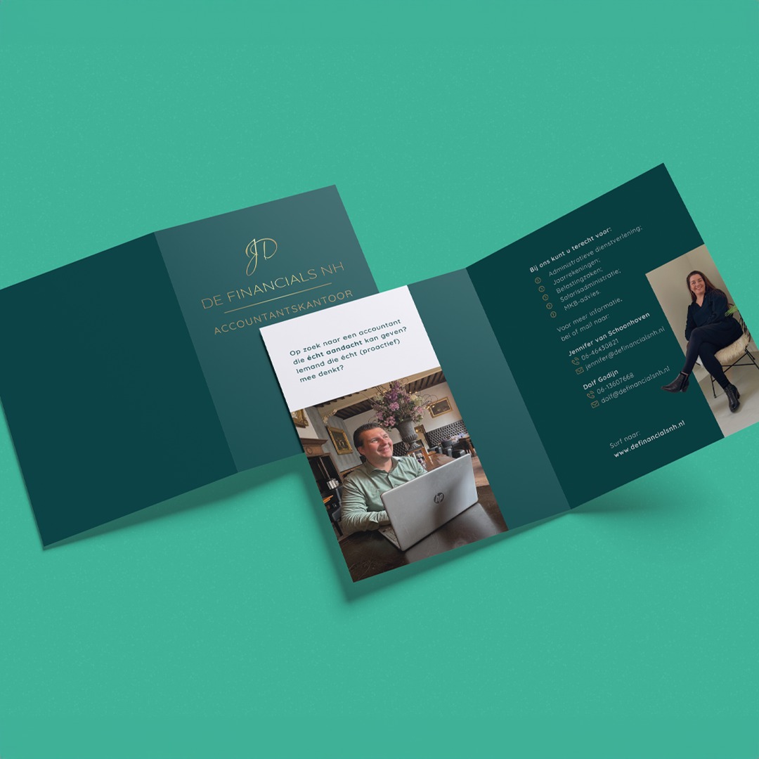 Voor De Financials NH, een accountantskantoor, mochten wij een mooie folder maken die de persoonlijke aanpak en identiteit van het kantoor weerspiegelt. Naast het ontwerp verzorgden wij de drukwerkbegeleiding en bezorgden de folders op locatie. Het resultaat is een overzichtelijk en aantrekkelijk communicatiemiddel dat de boodschap van het kantoor effectief overbrengt.